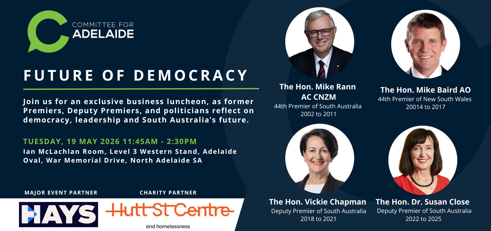 The Committee for Adelaide will host 'Back to Business' on Friday 27 March 2026, a thought leadership conversation exploring South Australia's trade, investment, and economic opportunities, just one week after the state election.